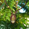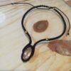 O Colar com Quartzo Rutilado é feito à mão utilizando uma técnica muito antiga de artesanato, o Macramê. Nessa técnica se utilizam apenas as mãos para tecer o nós que compõem a trama. São centenas de nozinhos tecidos em diferentes direções que resultam em um trabalho artesanal sublime e único.